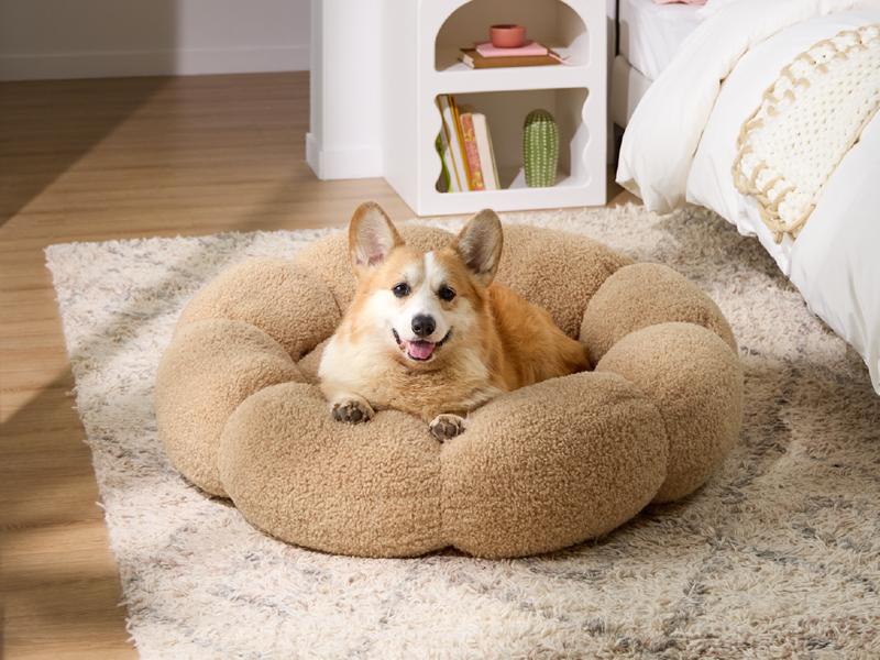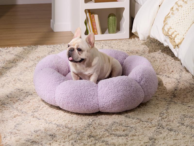 Lesure Calming Flower Bed - Flower Donut round Fluffy Puppy Bed in Plush Teddy Sherpa, Non-Slip Cute Flower Beds for Indoor, Machine Washable Dog Furniture Pet Supplies
