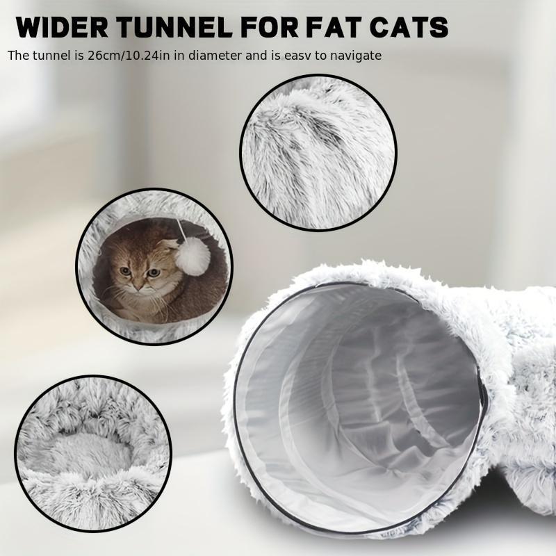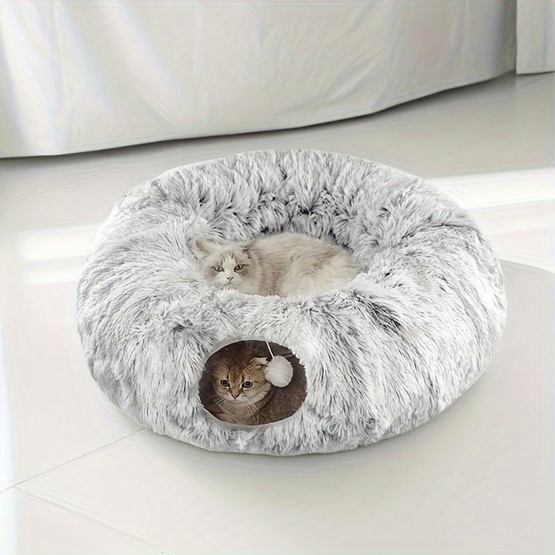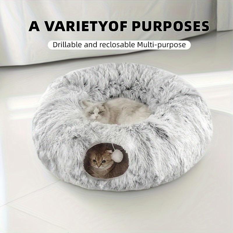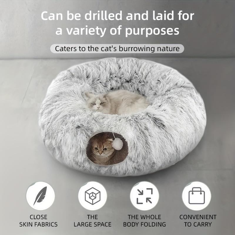 Long Plush Cat Bed and Cat Tunnel, Four Seasons Warm, Creative Design Foldable Pet Bed, Suitable for Cats and Dogs