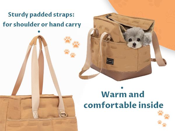 - [Pet Parent-friendly features] The small dog purse carrier, with 2 large pockets on the front for storage, allows you to carry puppy or small to medium cats anywhere and anytime. It can be carried either in your hand or on your shoulder and is suitable for everyday outings or as a flight carrier so you can take your pup shopping, walking, traveling, hiking and more.