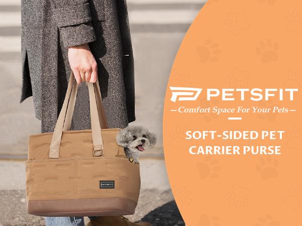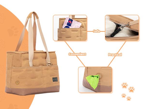 Petsfit Small Dog Carrier Purse, Portable Pet Carrier Tote Cat Carrier with Pockets, Adjustable Safety Leash, Poop Dispenser, Waterproof TPU Bottom,Khaki