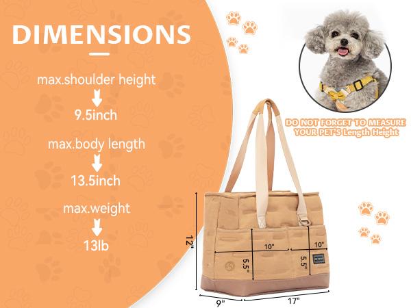 - [Practical Size] Product dimensions: 17"L x 9"W x 12"H and only 1.76 lbs weight - this soft sided pet carrier perfect for small dogs (like Chihuahua, Havanese, Pomeranian, Miniature dachshund, Maltese and more) and cats. Note: please measure your pet's length and height before purchase.